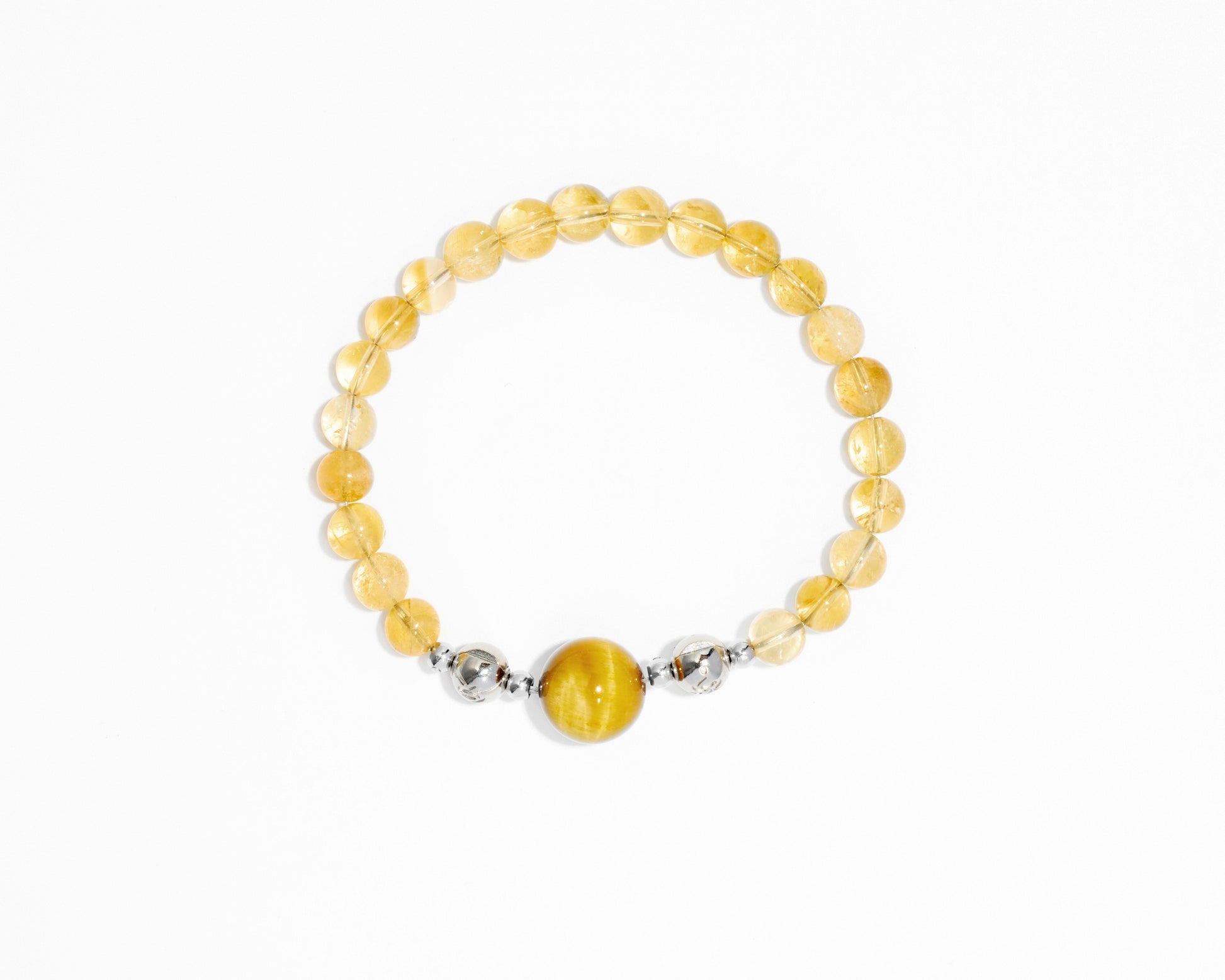金虎眼與黃水晶的結合,如同大地的厚實承載,不僅為財務運勢注入能量,更協助你建立清晰的目標與正向思維,讓每一步都踏實邁向人生目的。